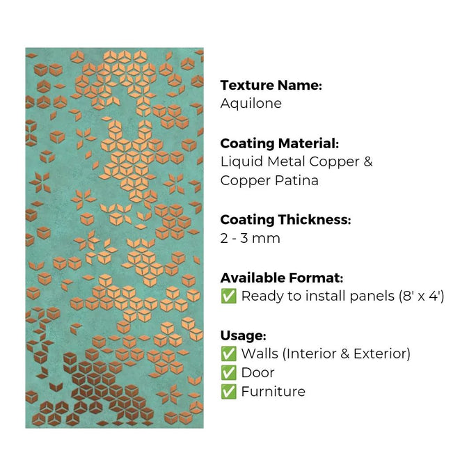 Add an extra dose of luxury to your design projects with our Aquilone Copper Patina wall panels.