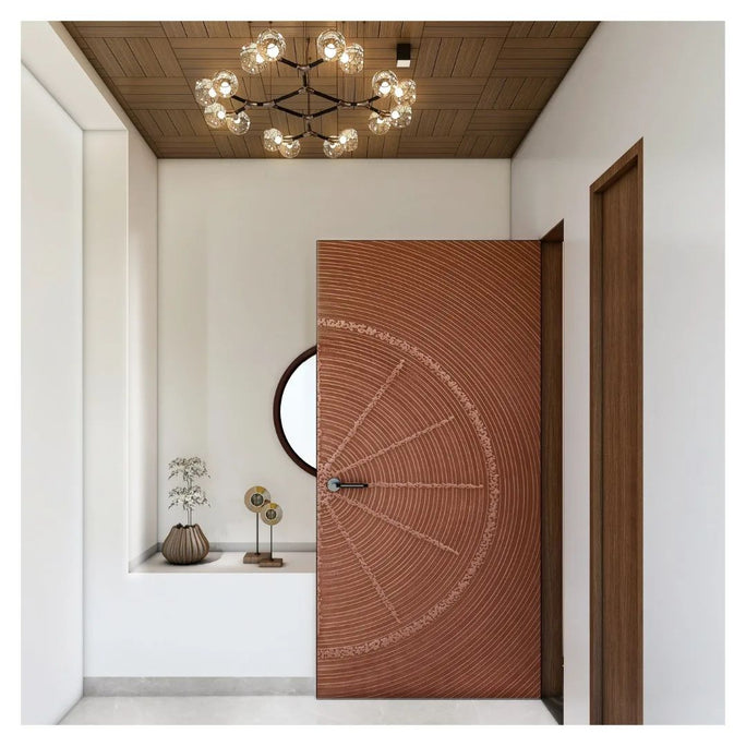 Looking to design a stunning entrance door? Our Sunray Copper door skin has got you covered.