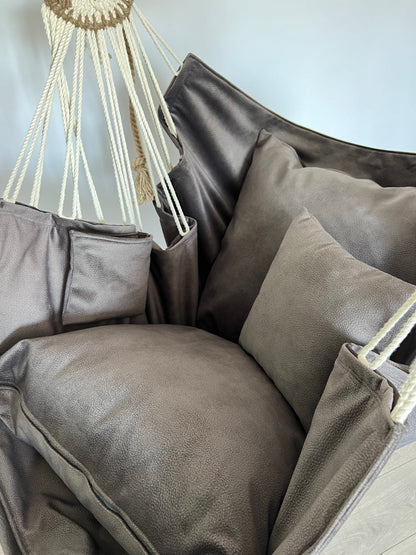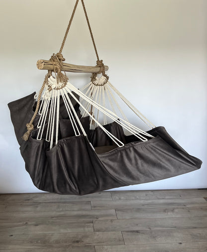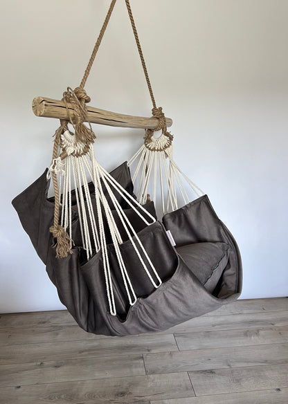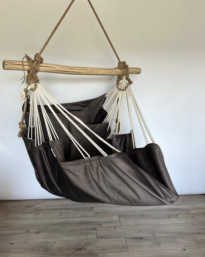 Carefully cut and sewn, it offers comfort even to the tallest user, with a large load capacity. The hammock armchair is reversible, it can be used on both sides.