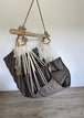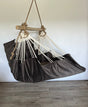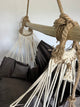 Handcrafted from high-quality, soft-touch materials and 100% recycled cotton twine, the hammock chair is supported by a hardwood beam and heavy-duty jute rope.