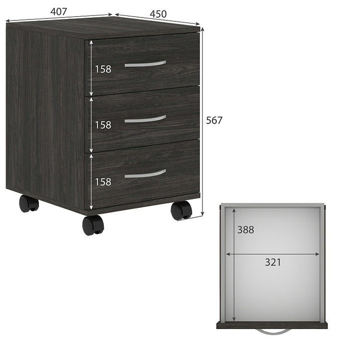 THREE DRAWER MOBILE PEDESTAL, MADE IN E1 LAMINATE CHIPBOARD.