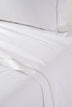The Yves Delorme Athena Flat Sheet is a timeless classic inspired by Athéna, the goddess of handicraft and weaving. Crafted from organic cotton percale with a 500 thread count, it offers a crisp, resistant, and sophisticated matte finish. Made in France, this luxurious design features a pure graphic expression of a colored bourdon stitch, elegantly framing the flanged pillow shams and duvet cover. Experience exceptional quality and elegance with this exquisite bedding.