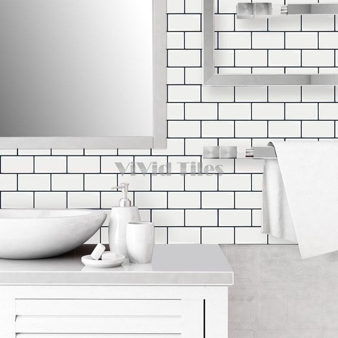 Step 3. Overlap the tiles and grout lines, peel off the backing, and stick them side by side for a seamless appearance.