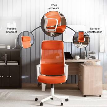 Aksel Office High Back Chair Mesh And Fabric White Orangeufc0800006