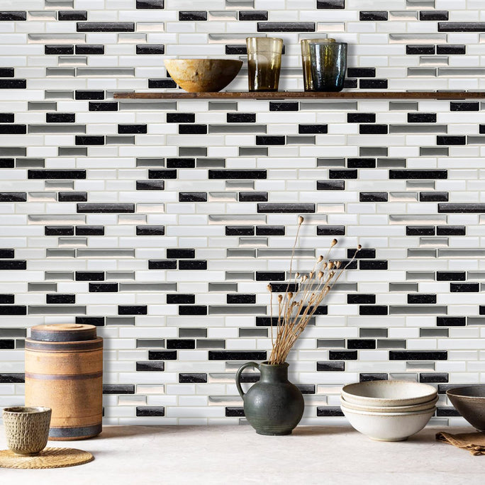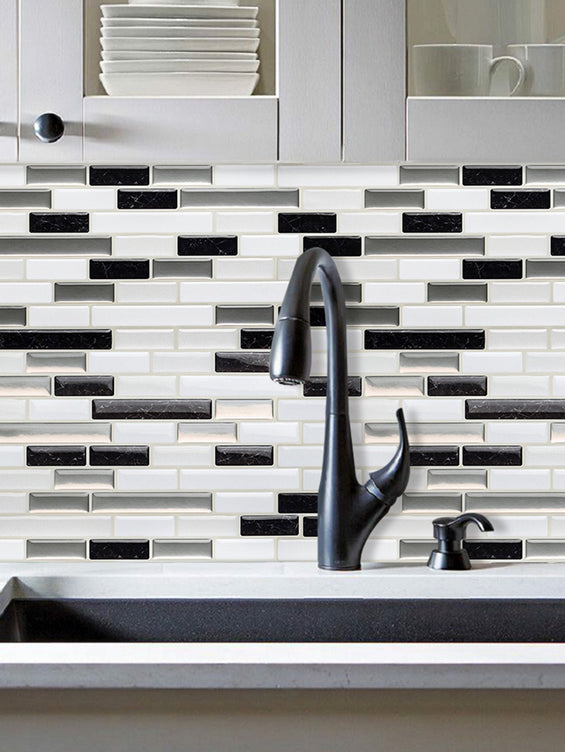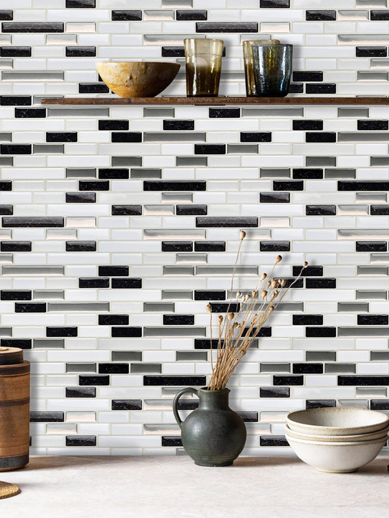 Step 3. Overlap the tiles and grout lines, peel off the backing, and stick them side by side for a seamless appearance.