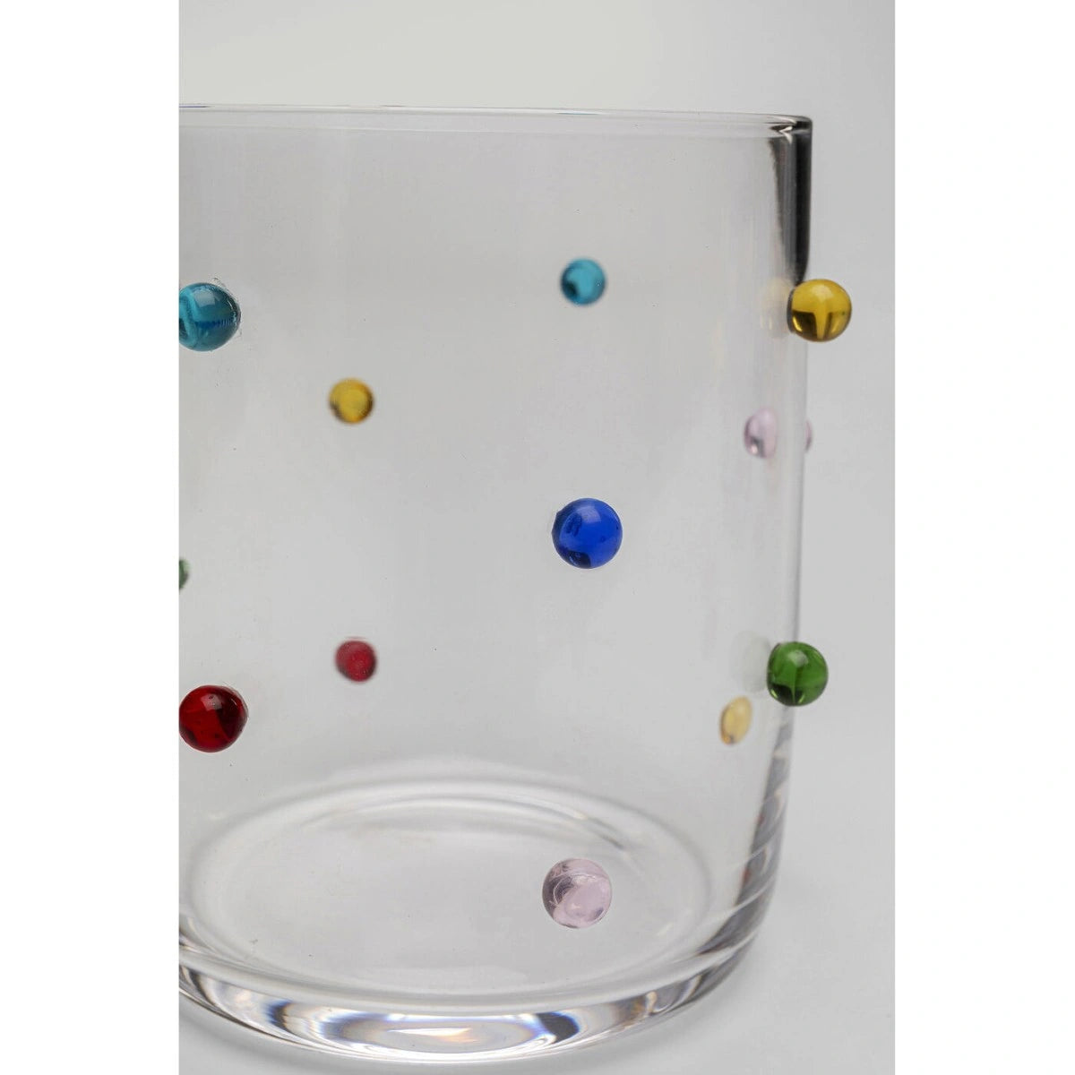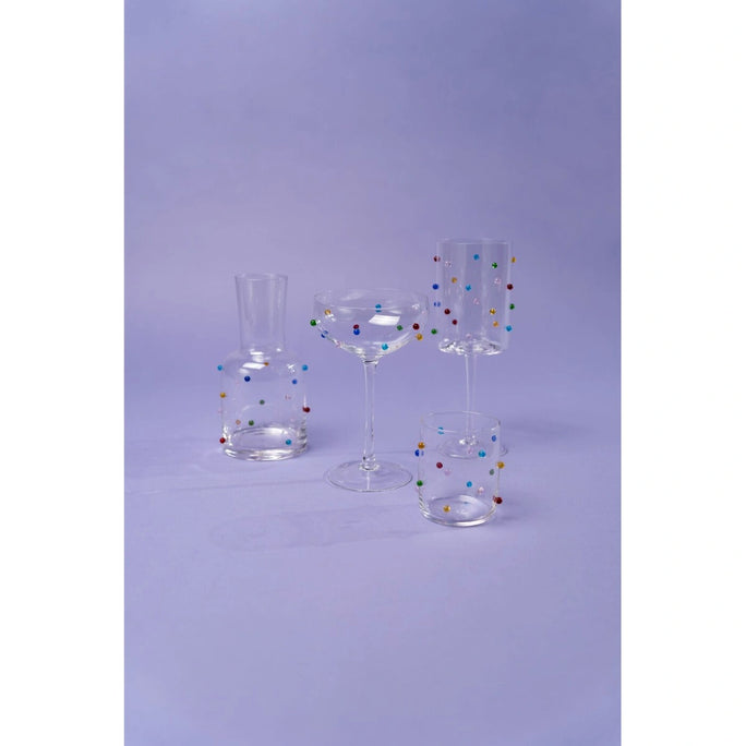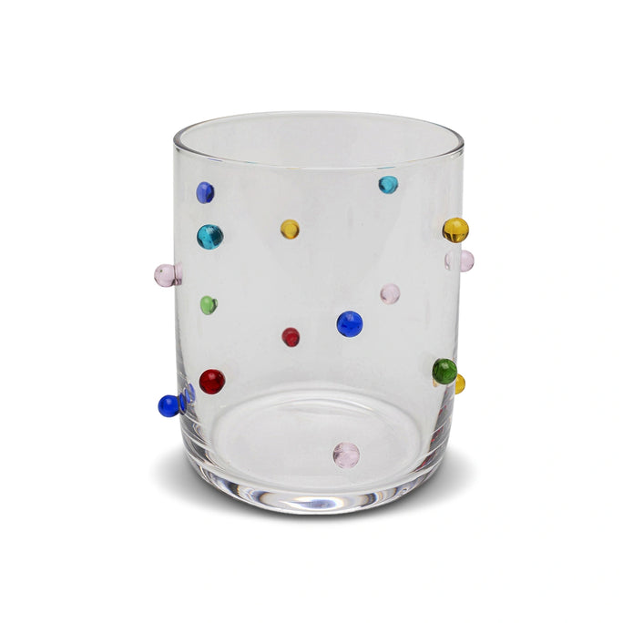 The Dots Tumbler Small Multicolour is a playful and vibrant glass perfect for serving water, juice, or cocktails. Featuring a unique multicolour dotted design, this tumbler adds a cheerful touch to any table setting. Its compact size makes it ideal for everyday use, while the high-quality glass ensures durability. The Dots Tumbler is easy to clean and maintain, making it a practical and stylish choice for both casual and festive occasions.