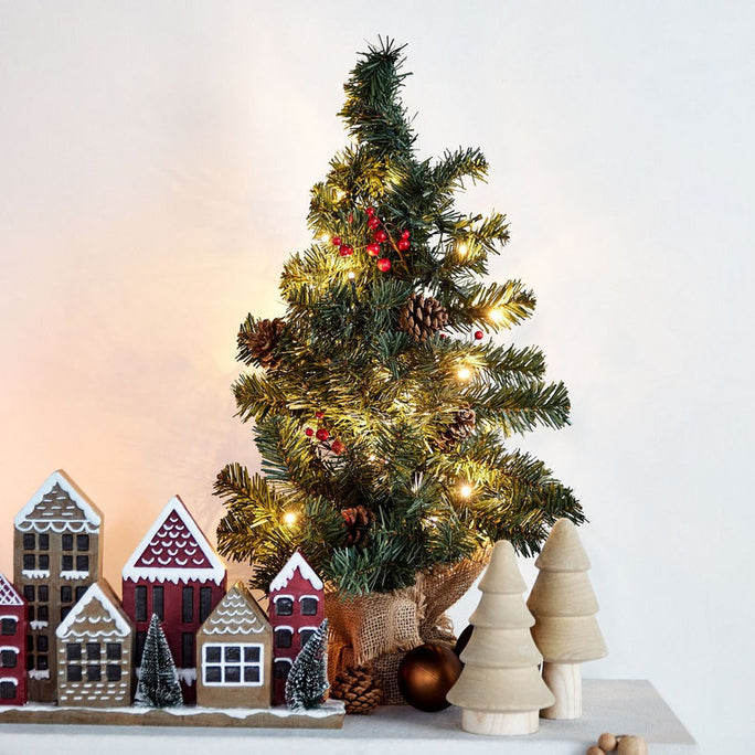 Exeter Mini 30-LED Cones and Berries Table Top Christmas Tree with 78 Tips — 2 ft