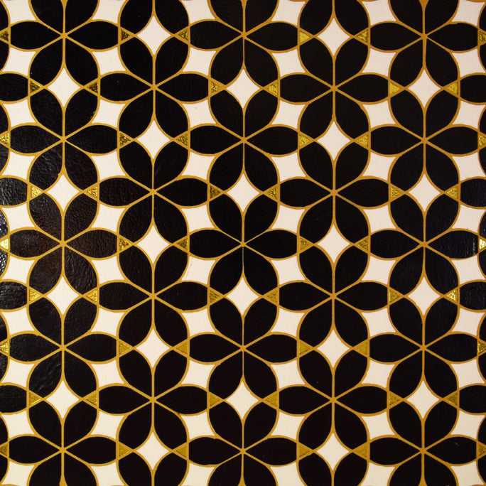 Fused, colored and transparent drawn glass mosaic, obtained with the craftsmanship working of a glass slab with the application of a silver foil back side, waterjet cut. Composed with 25% quality materials, pre-consumer recycled glass and 75% post-consumer recycled glass.