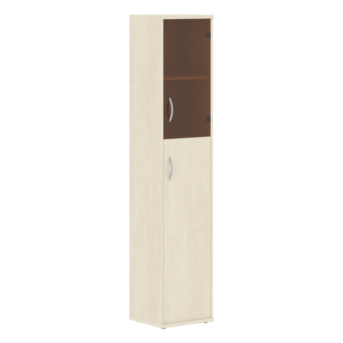 FULL HEIGHT CABINET, MADE IN E1 LAMINATE CHIPBOARD, WITH GLASS AND WOODEN SWING DOORS