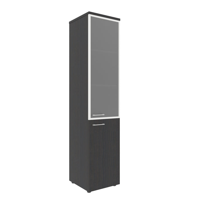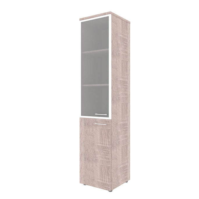 FULL HEIGHT CABINET, MADE IN E1 LAMINATE CHIPBOARD, WITH GLASS AND WOODEN SWING DOORS