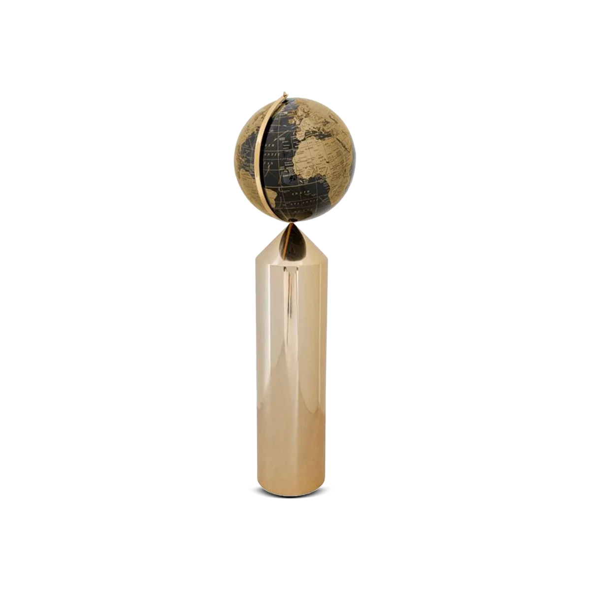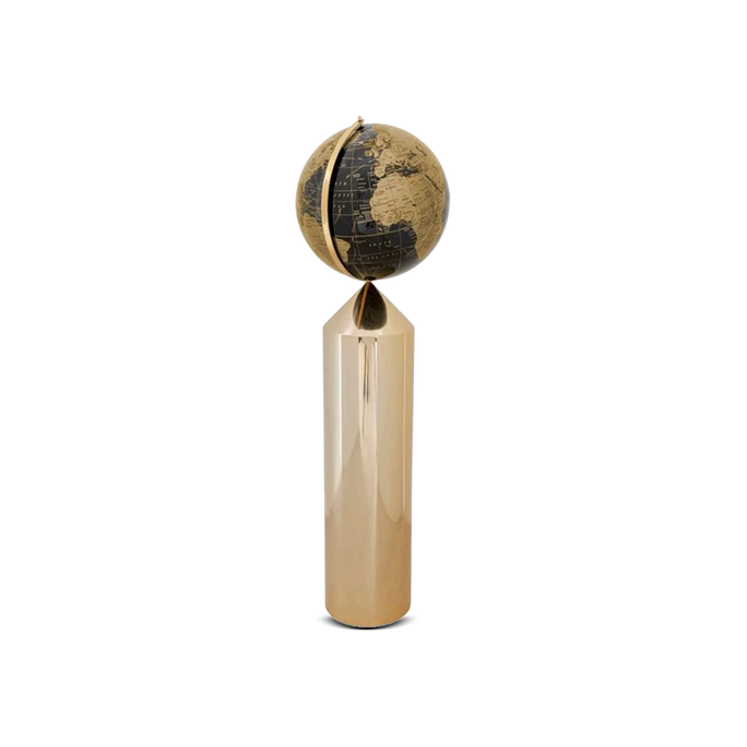 Bring a touch of worldly elegance into your home with this striking black-and-gold globe décor piece. Hand-crafted with a lacquered stainless-steel frame, the movable globe sits atop a tall, tapered gold column, creating a bold sculptural silhouette that instantly elevates any space.