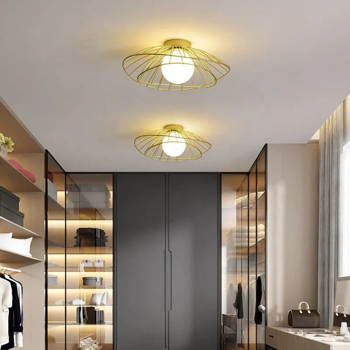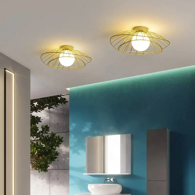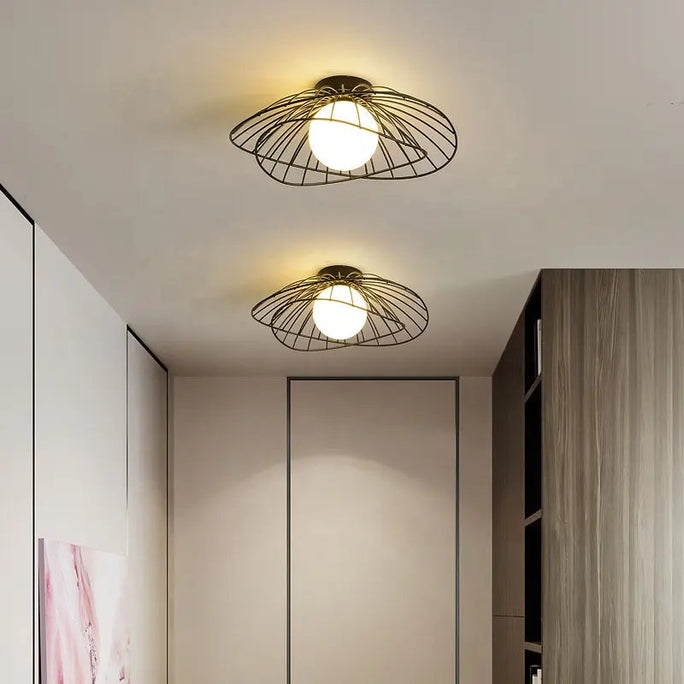 Industrial chandelier ceiling lights Nordic Creative Straw Hat glass ball lamp Cloakroom Balcony hallway led ceiling light