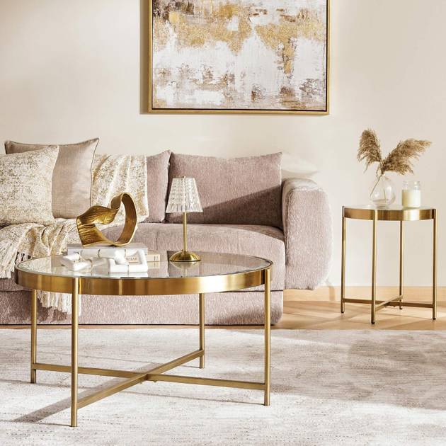 Its weave brings subtle texture and resilience, ideal for everyday relaxation. With gold finish; modern silhouette; easy, care, it sits effortlessly between comfort and considered design. At COFFEE TABLE 90 cm L x 90 cm W x 45 cm H, the proportion suits layering, folding and relaxed lounging. Perfect for cosier evenings, quick styling updates and adding gentle texture to your scheme. Usage idea: drape over a neutral sofa for a soft, layered look. It works beautifully for layering, quick styling refreshes and creating a relaxed, welcoming feel.