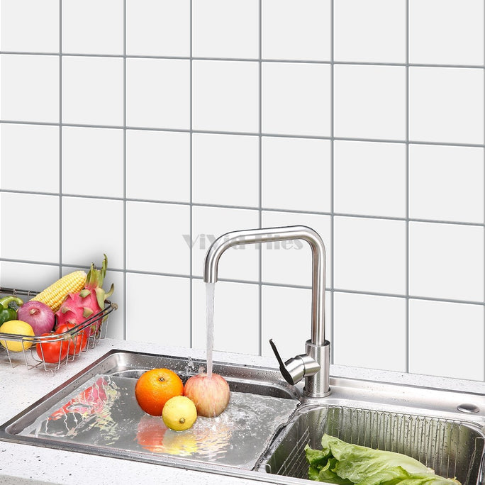 Thick 1.6mm Square Shape 12 X 12 Inch Peel And Stick White With Grey Grout Square Shape Vinyl Wall Tile Home Decor Kitchen Bathroom Living Room VP526